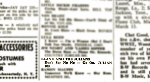 Released in 1961 under the group name “Blane & the Julians” - J-102 It Doesn’t Matter b/w Someday, One Day